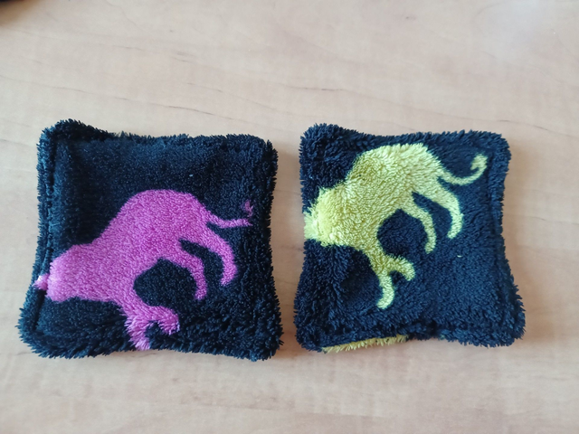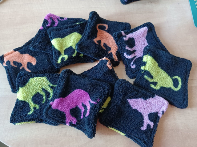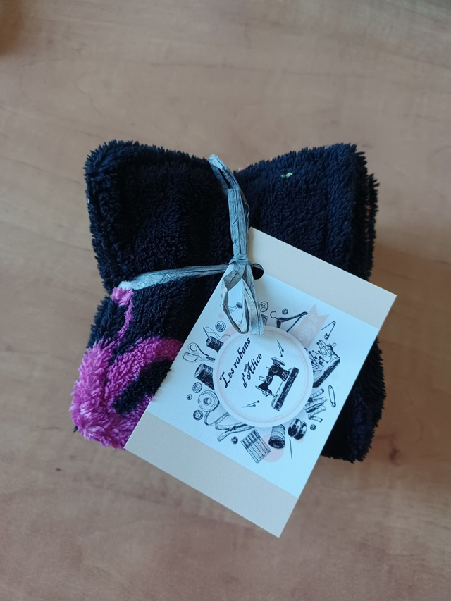 Coton démaquillant réutilisable, en forme de carré de 10 cm, tissu polaire noir avec silhouette de guépard coloré