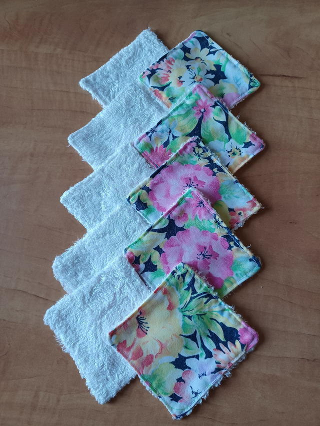 Coton démaquillant réutilisable, en forme de carré de 8 cm, tissu bambou blanc et tissu coton imprimé rose fleuri