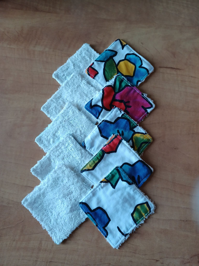 Coton démaquillant réutilisable, en forme de carré de 8 cm, tissu bambou blanc et tissu coton imprimé blanc fleuri
